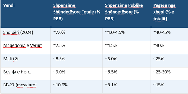 Në vendet e tjera të Rajonit nisin nga 7.5-9% e PBB-së që kalon si shpenzim në total për shëndetësinë, ndërsa për vendet e BE-së mesatarja është mbi 10 % e PBB-së.