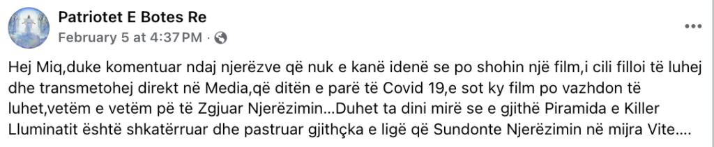 Për më tepër, llogaria që e ka shpërndarë këtë pretendim (që quhet “Patriotët e Botës së Re”) shfaq qartë prirje drejt shumë teorive konspirative, duke përfshirë narrativa për elita globale sekrete, Iluminatit, dhe manipulim masiv historik.