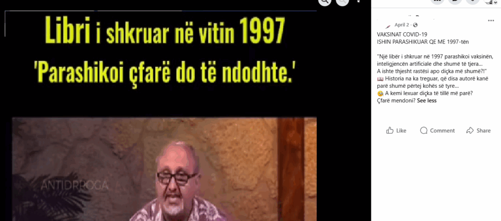 Në rrjetet konspiracioniste po qarkullon pretendimi se një libër i shkruar në vitin 1997 “parashikoi vaksinën, inteligjencën artificiale dhe shumë të tjera.”