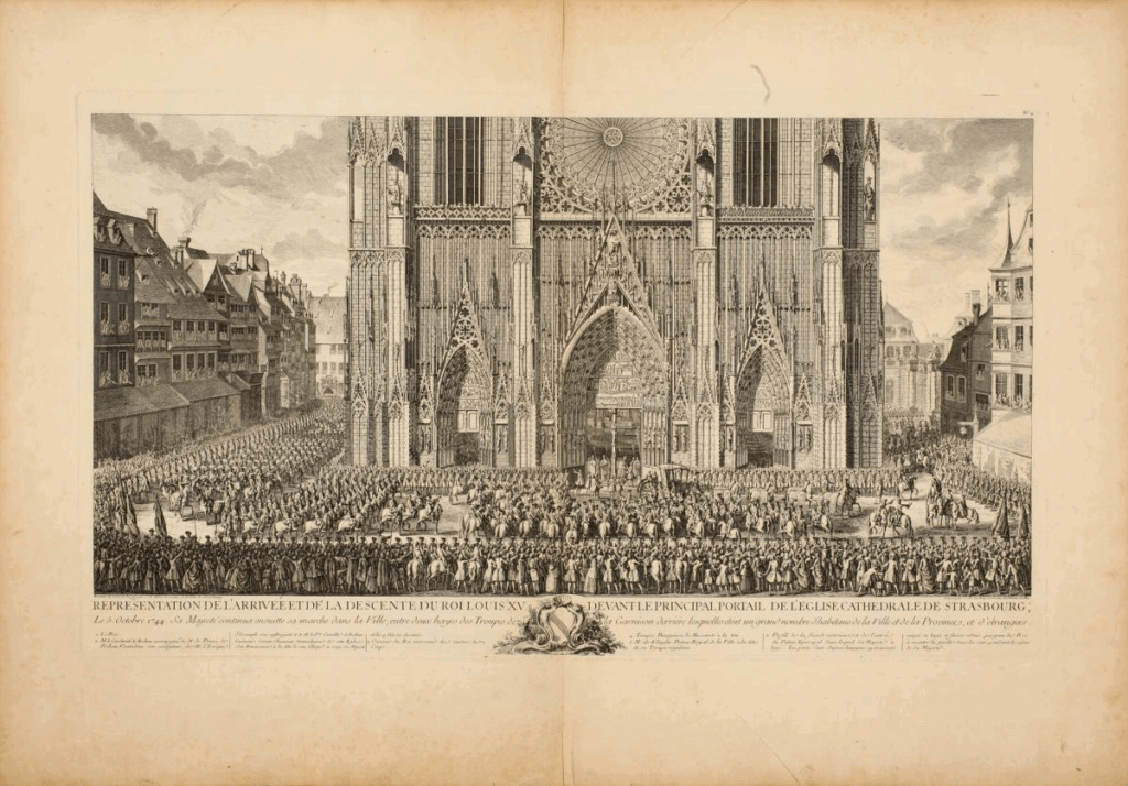 Paraqitja e mbërritjes së Mbretit Luigji XV para Katedrales së Strasburgut, 5 tetor 1744