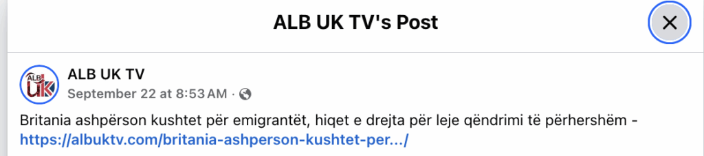 Sipas disa mediave shqiptare, në Britaninë e Madhe është hequr leja e qëndrimit e përhershme. Kjo leje qëndrimi zakonisht i jepet personave që kanë jetuar për një kohë të gjatë në Britani, dhe përbën një hap përpara marrjes së nënshtetësisë në këtë vend të lakmuar nga shqiptarët. Në media, lajmi është paraqitur si një ligj i ri, por në fakt një normativë e tillë ende nuk është miratuar nga parlamenti britanik. Përkundrazi, këtu bëhet fjalë për një propozim politikë të partisë të ekstrimeti të djathtë, Reform UK, detaj që përmendet në trupin e këtyre artikujve, por jo në titull.