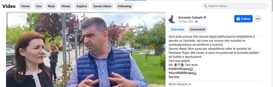 Katër ditë para zgjedhjeve vendore të 14 majit 2023, Armando Subashi, kandidat për kryetar të Bashkisë Fier, premtoi përfundimin e shpejtë të rehabilitimit të qendrës së Libofshës.