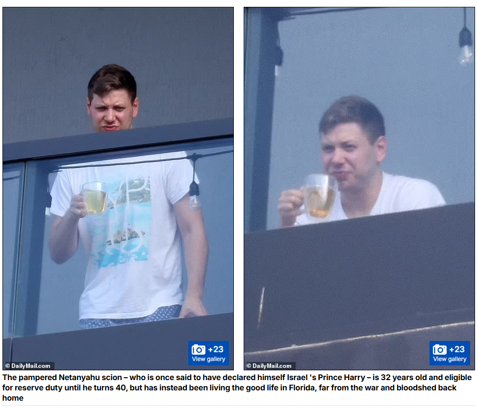 Foto e Yair Netanyahu, djali i Benjanim dhe Sara Netanyahu, në ballkonin e një apartamenti luksoz në Florida, ShBA, u botua në shkurt 2024 nga tabloidi britanik Daily Mail.