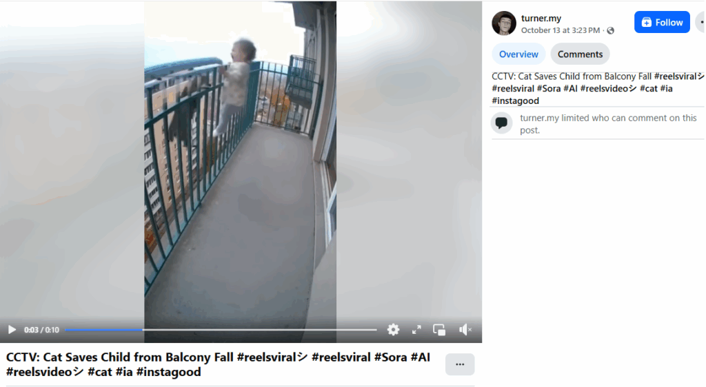 Pretendimi: Kjo video tregon një mace duke shpëtuar një fëmijë të vogël nga rënia nga ballkoni.