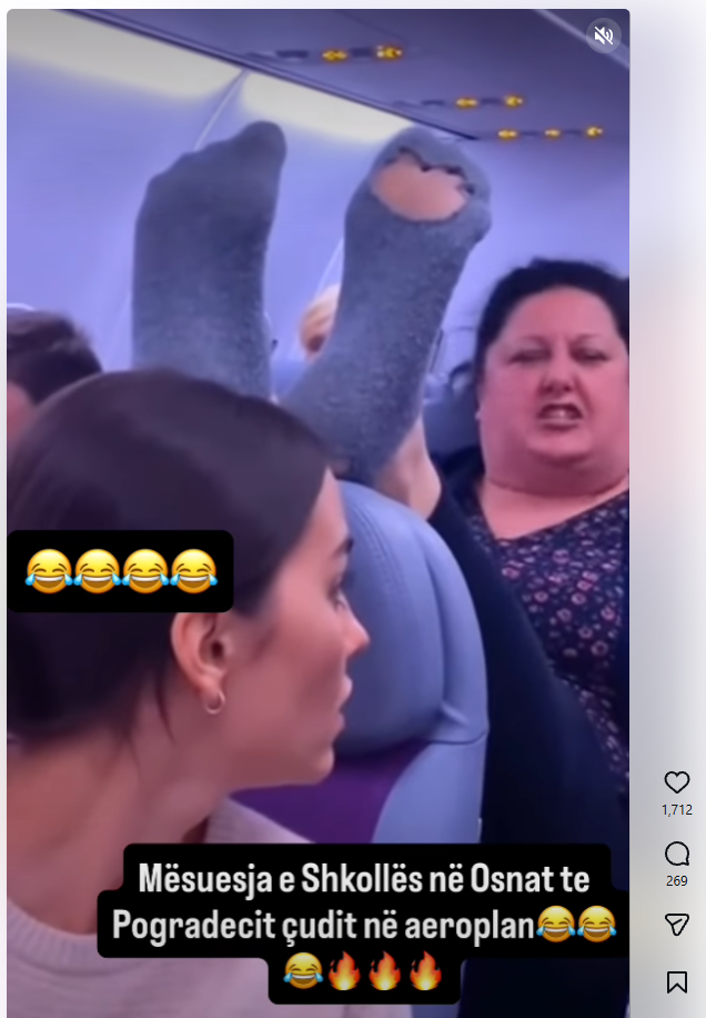 Një video që ka marrë mbi njëmijë pëlqime në Instagram pretendon se tregon një mësuese pogradecare, e cila ka vendosur këmbët mbi kokën e pasagjeres para saj dhe përplaset me të përtej çdo norme normale etike.