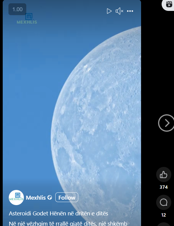 Një video që po qarkullon në rrjete sociale, përfshi ato shqipfolëse, pretendohet se tregon një asteroid duke goditur sipërfaqen e Hënës gjatë ditës.