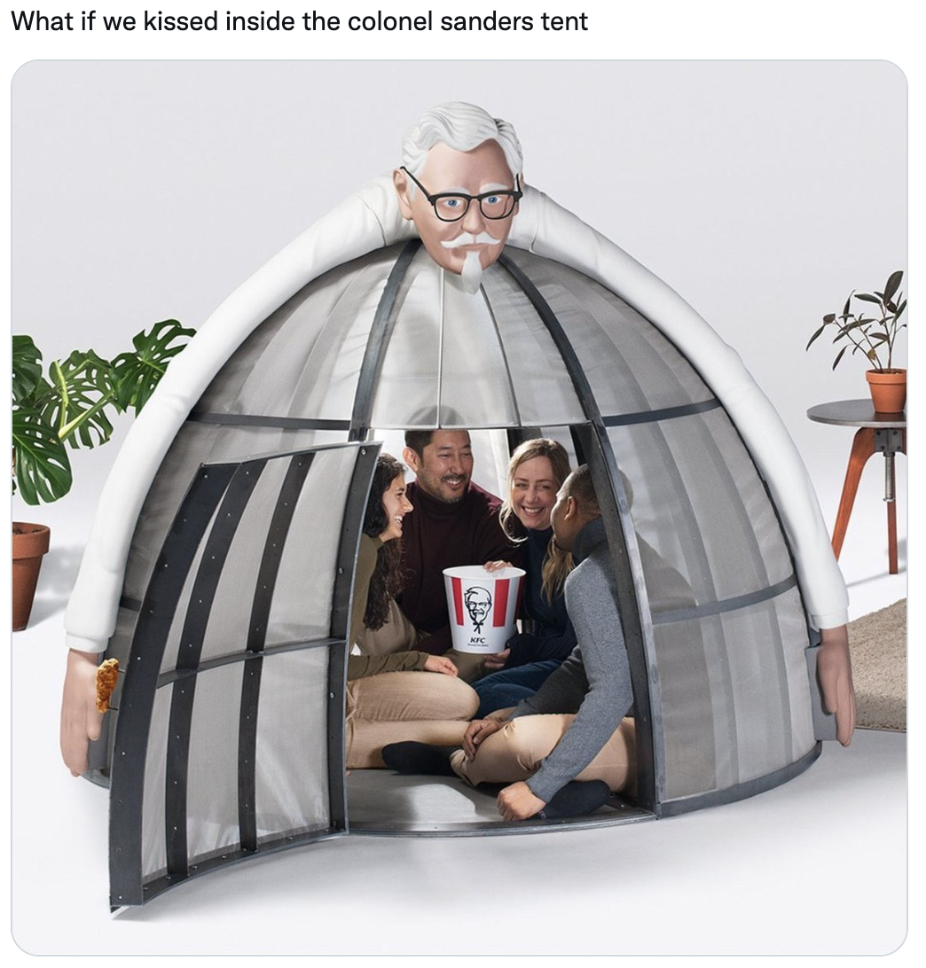 “KFC tallet me palestinezët të cilët qëndrojnë në Rafah nëpër tenda! ‘Na falni nuk ka tenda këtu, ka vetëm pulë të mirë“- shkruan profili i Facebook i “Gazeta Selam” në postimin që shoqëron meme-n e re të KFC.