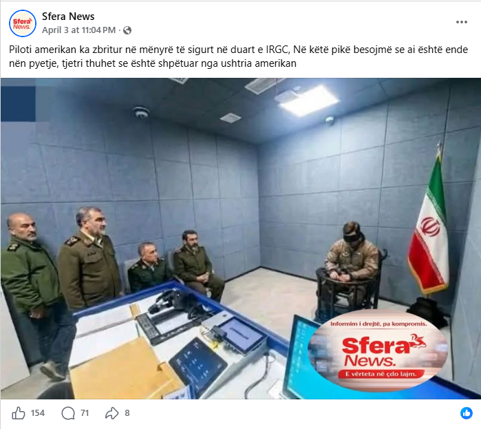 Pretendimi: Ky imazh tregon një pilot amerikan të kapur nga Garda Revolucionare iraniane në prill 2026