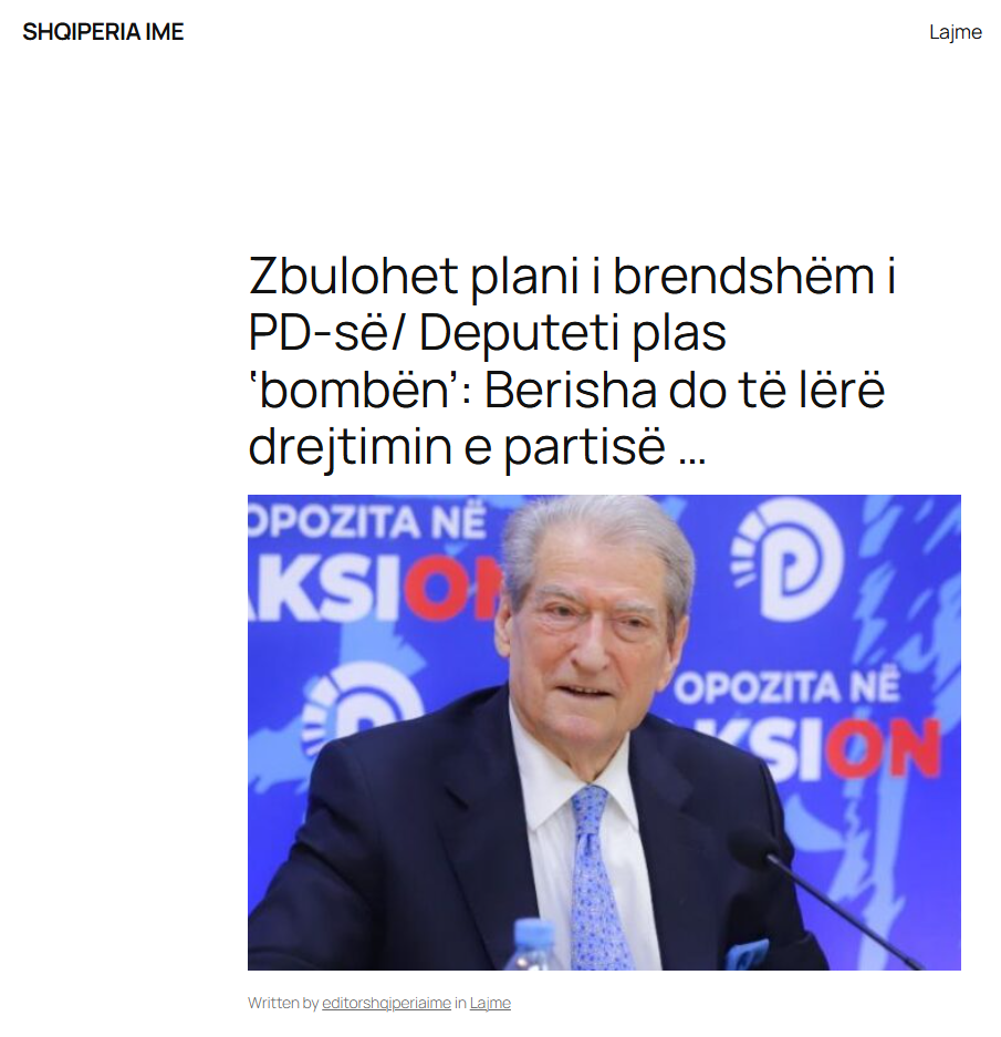 “Zbulohet plani i brendshëm i PD-së/ Deputeti plas ‘bombën’: Berisha do të lërë drejtimin e partisë …” lajmëron titulli i artikullit të portalit Shqipëria Ime.
