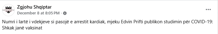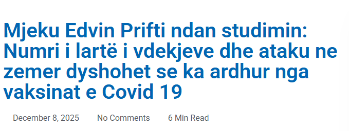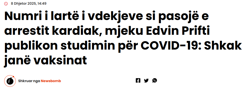 Një postim i ish-shefit të Shërbimit të Kardiokirurgjisë, Edvin Prifti, ka frymëzuar një sërë portalesh dhe mediash shqipfolëse për të raportuar se një studim i fundit ka treguar se rritja e vdekjeve nga ataku kardiak mund të jetë shkaktuar nga vaksinimi anti-Covid.