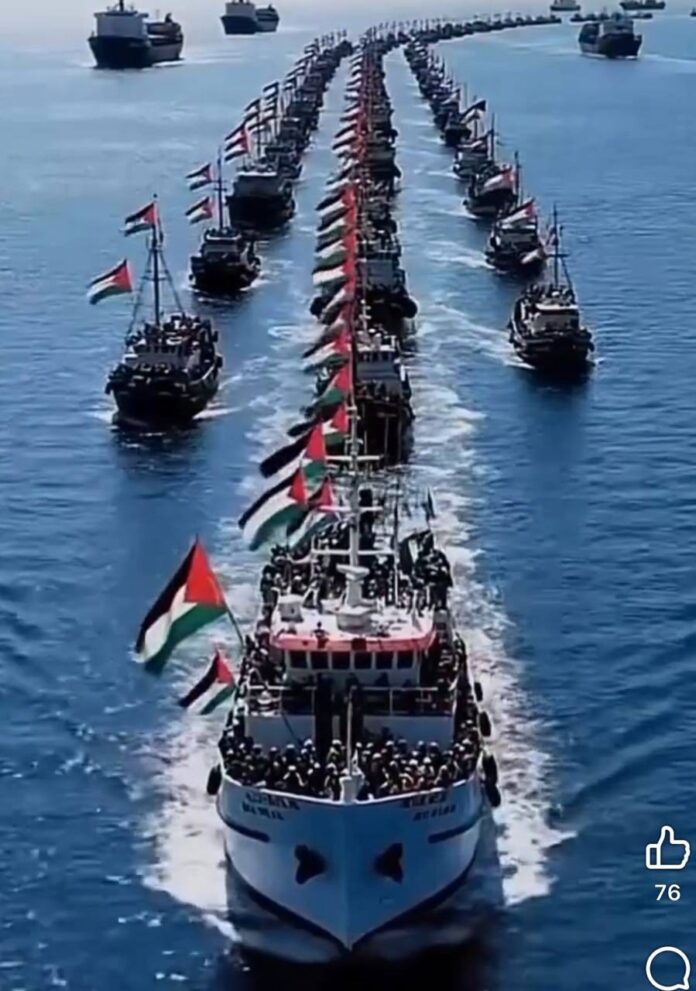 Postimi me gjasa i referohet Global Sumud Flotilla, një iniciativë ndërkombëtare detare e udhëhequr nga shoqëria civile me qëllim thyerjen e bllokadës izraelite të Gazës.
