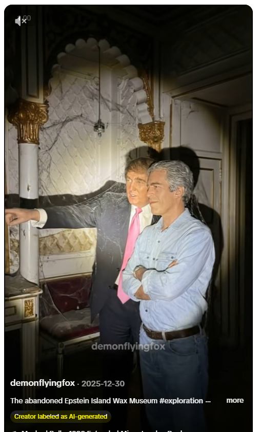 Një video që po qarkullon në rrjete sociale, përfshi ato shqipfolëse, duket se tregon një muze dylli të braktisur, në të cilin shfaqen statuja dylli të vendosura në skena që kanë lidhje me çështjen e pedofilit dhe trafikantit të fëmijëve Jeffrey Epstein dhe ishullit të tij privat ku ndodhte abuzim seksual i të miturve.