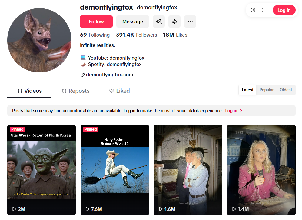 Në fakt, i tërë profili i demonflyingfox, që sipas përshkrimit në Youtube dëshiron “të tregojë se çfarë është e mundur me inteligjencën artificiale”, përbëhet nga përmbajtje të gjeneruara me AI.