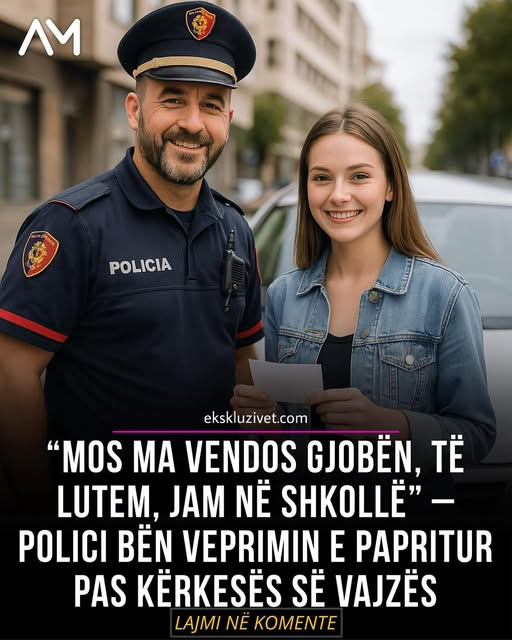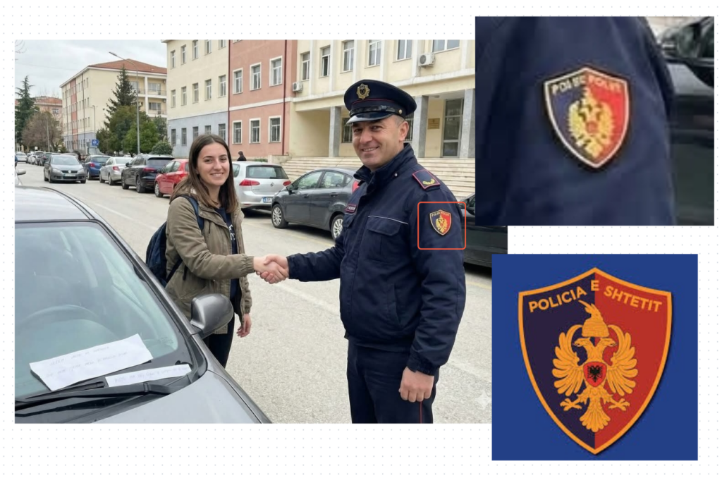 Pretendimi: Ky imazh tregon një polic shqiptar duke shtrënguar duart me një vajzë që iu lut të mos i vendoste gjobë sepse ishte në shkollë