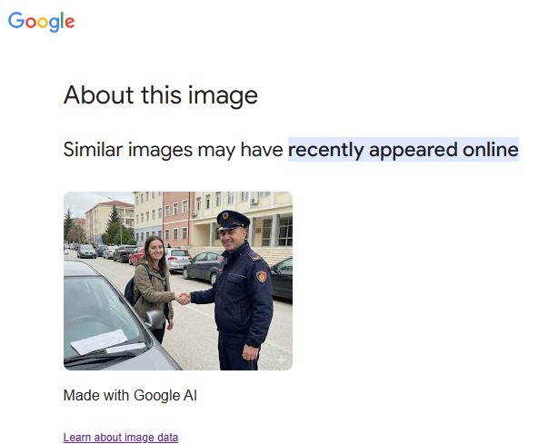 Më tej, një kërkim pamor me Google Lens tregoi se imazhi është etiketuar si “I bërë me Google AI.”