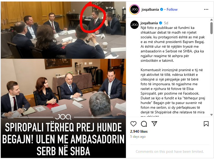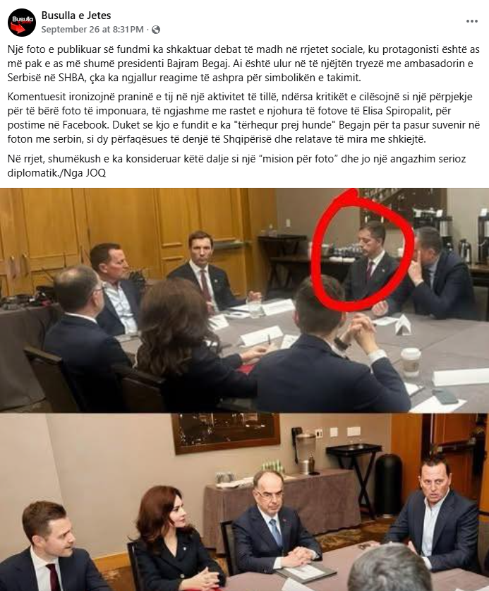 Pretendimi: Presidenti shqiptar Bajram Begaj është bindur nga ministrja e jashtme Elisa Spiropali të ulet pranë ambasadorit serb në ShBA