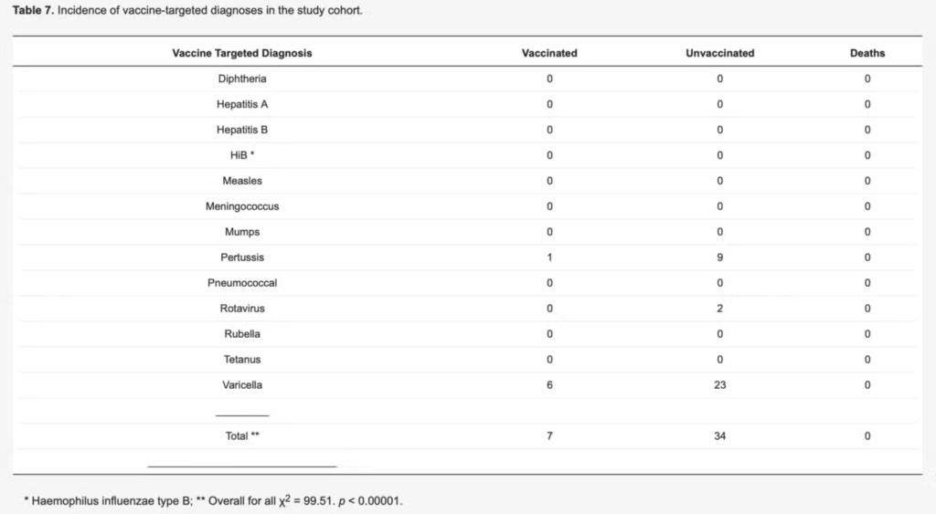 Ironikisht, siç theksoi Gorski, Tabela 7 e studimit tregon se vaksinat funksionojnë, me një rënie statistikisht të rëndësishme në incidencën e sëmundjeve të parandalueshme nga vaksina tek fëmijët e vaksinuar krahasuar me fëmijët e pavaksinuar.