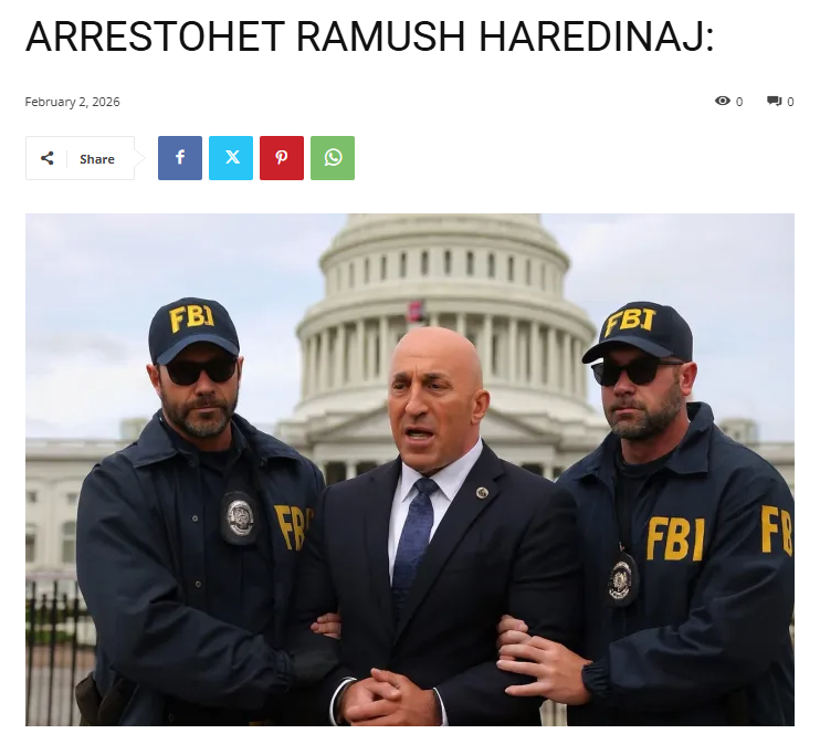 Lajmi i botuar më 2 shkurt pretendon se Haradinaj u arrestua pas Lutjes së Mëngjesit, e cila do të mbahet në Washington Hilton në Washington DC të enjten më 5 shkurt 2026. Arrestimi lajmërohet para se të ndodhë.