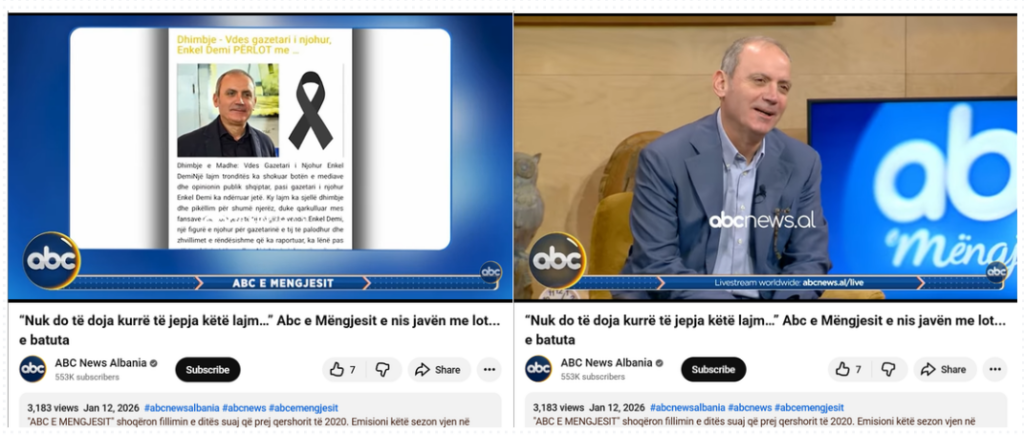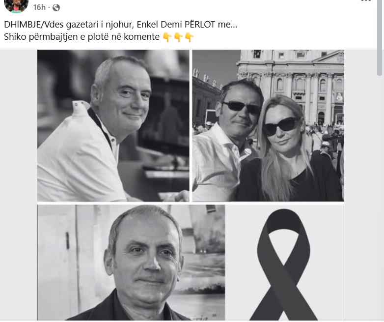 Një postim në Facebook njofton vdekjen e trishtueshme të gazetarit shqiptar, Enkel Demi, ndërsa lexuesit ftohen të klikojnë një lidhje në komente për të mësuar më shumë.