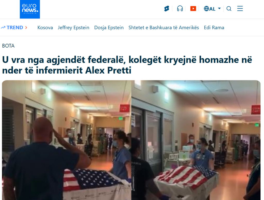 Pas vrasjes së amerikanit Alex Pretti nga oficerët federalë të emigracionit (ICE), një video po qarkullon në media dhe rrjete sociale, përfshi ato shqipfolëse, duke pretenduar nderimet ushtarake nga kolegë t në nder të infermierit 37-vjeçar ndërsa trupi i tij po nxirrej nga spitali për herë të fundit.