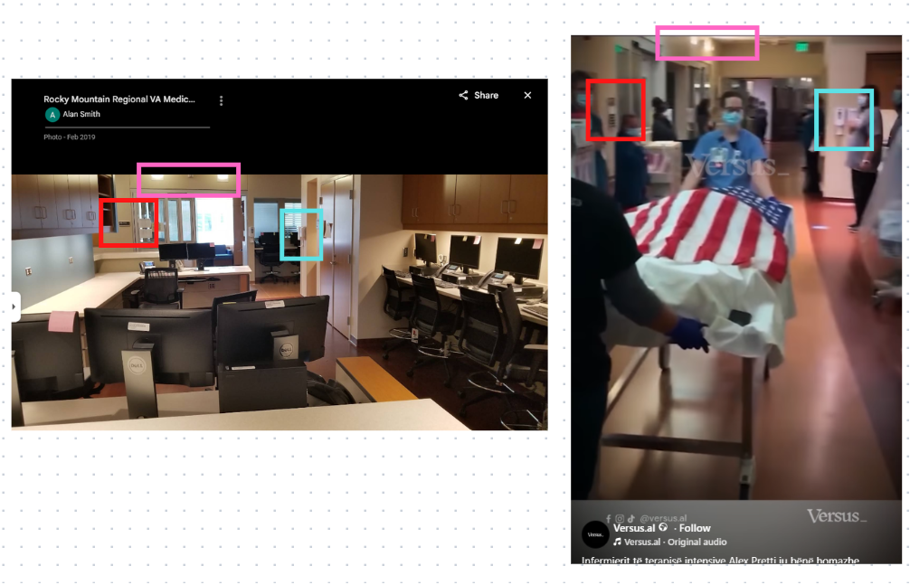 Tregues pamorë si numri i dhomës, përputhen me një foto nga Google e njësisë së kujdesit intensiv në Qendrën Mjekësore Rocky Mountain VA në Denver, Colorado.