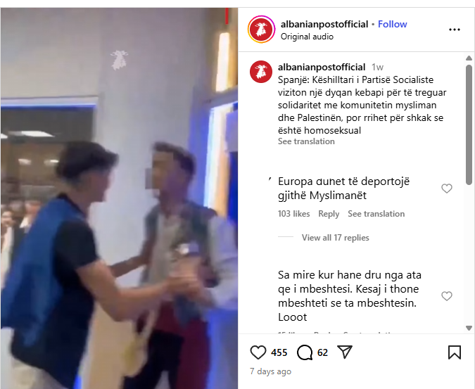 Një video që po qarkullon në rrjete sociale, përfshi ato shqipfolëse, pretendohet se tregon një këshilltar të Partisë Socialiste në Spanjë, që “viziton një dyqan kebapi për të treguar solidaritet me komunitetin mysliman dhe Palestinën, por rrihet për shkak se është homoseksual.”