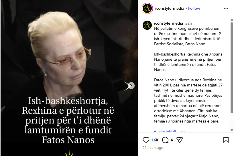 Pas ndarjes nga jeta të ish-kryeministrit Fatos Nano, një numër portalesh shqiptare nxituan të raportonin për praninë e ish-bashkëshortes së tij, Rexhina Nano, në ceremoninë e homazheve për nderim të tij.