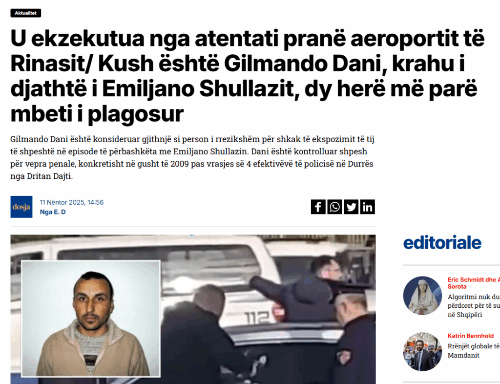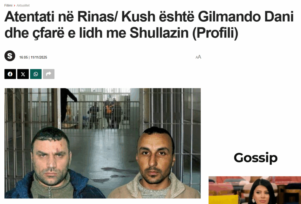 Pas atentatit që ndodhi më 11 nëntor 2025 afër aeroportit të Rinasit, mediat shqipfolëse nxituan të botonin emrin, foton dhe historinë kriminale të viktimës, Gilmando Dani. Megjithatë, disa prej tyre botuan foton e gabuar.