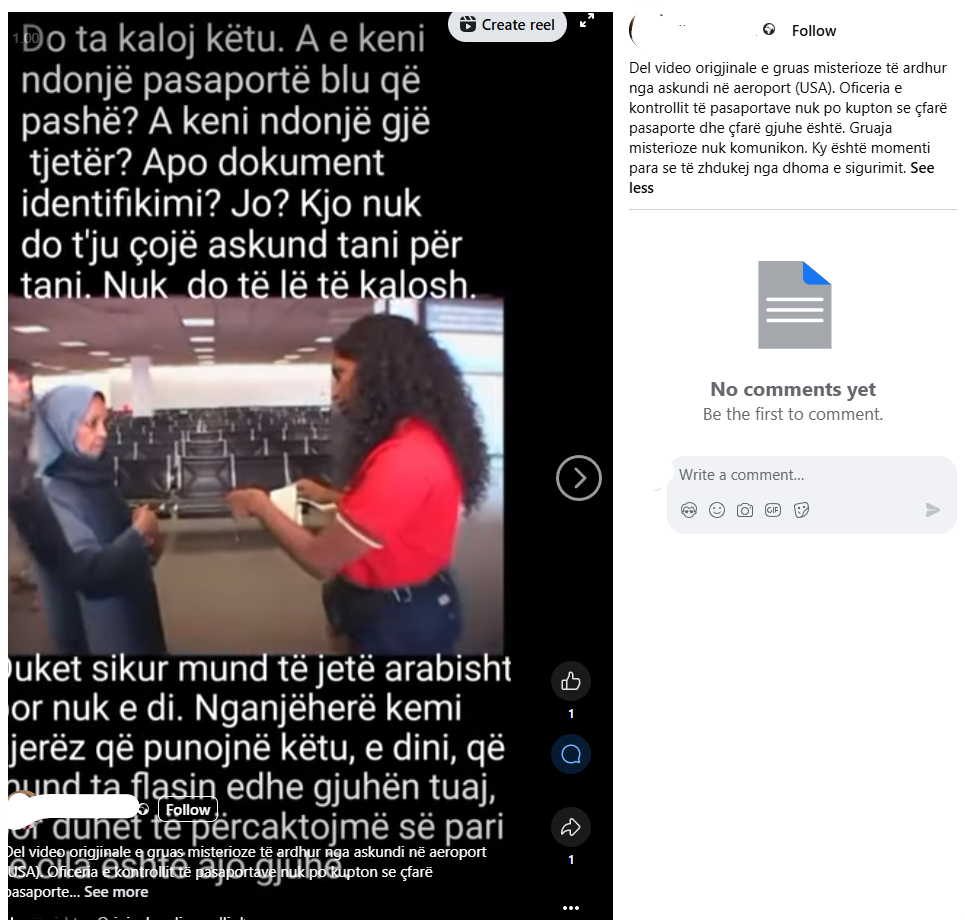 Përshkrimi që shoqëron videon pretendon se “oficeria e kontrollit të pasaportave nuk e kupton se çfarë pasaporte dhe çfarë gjuhe është. Gruaja misterioze nuk komunikon. Ky është momenti para se të zhdukej nga dhoma e sigurimit.”