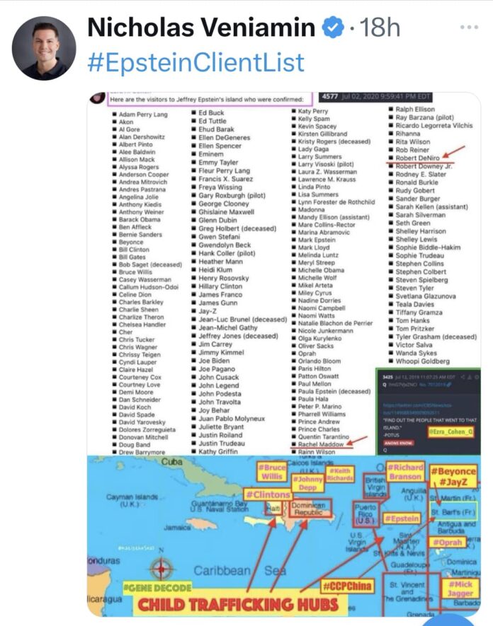 Në rrjete sociale, përfshi dhe ato shqipfolëse, po qarkullon një listë emrash që pretendohet se ishin “klientët” e trafikantit të fëmijëve Jeffrey Epstein.