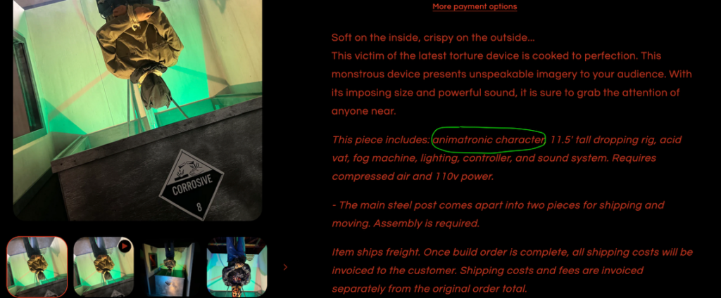 Në fakt, përtej disa detajeve të imazheve që të shtyjnë të dyshosh se ngjarjet zhvillohet në një ambjent normal burgu, verifikimit nëpërmjet motorrit të kërkimit Google lens konfirmon se ajo që pretendohet si torturë është një lojë e krijuar për festimet e Halloween apo parqet e lodrave.