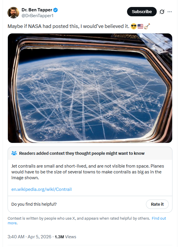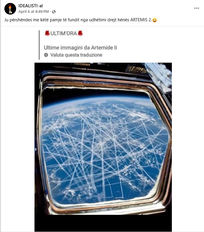 Imazhi që po qarkullon në rrjete sociale është postuar fillimisht në platformën X më 5 prill 2026, shoqëruar me përshkrimin: “Ndoshta nëse NASA do të kishte postuar këtë, do ta kisha besuar.”