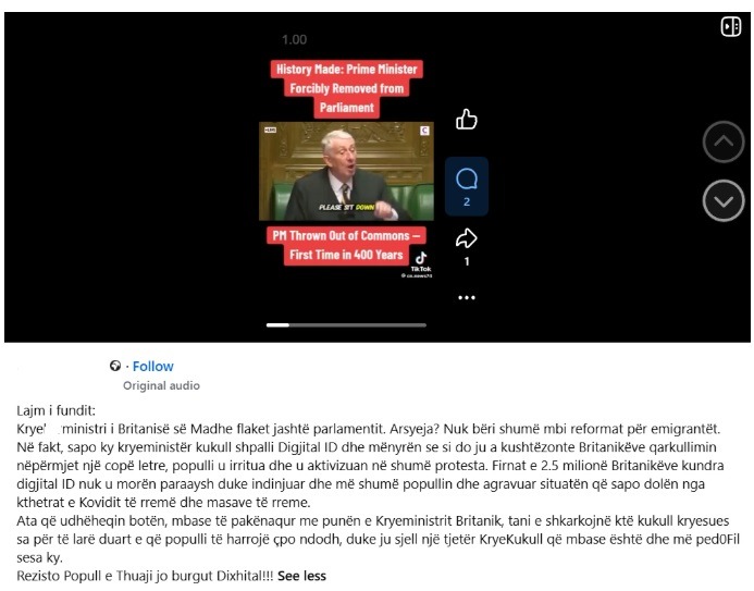 Në rrjete sociale, përfshi ato shqipfolëse, po qarkullon pretendimi se kryeministri britanik Keir Starmer është nxjerrë jashtë nga parlamenti sepse “nuk bëri shumë mbi reformat për emigrantët.”