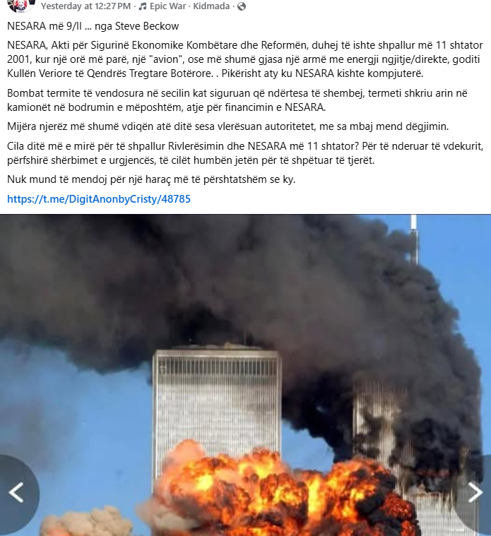 Në përvjetorin e shkatërrimit të Kullave Binjake në ShBA më 11 shtator, në rrjete sociale, përfshi ato shqipfolëse, riqarkullojnë teori konspirative dhe pretendime keqinformuese mbi sulmin terrorist.