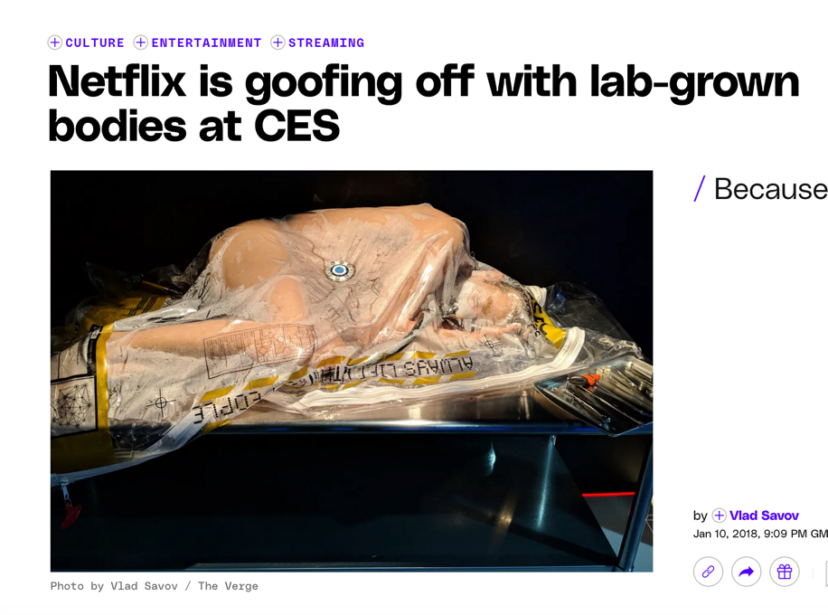 Burimi i imazhit dhe videos nuk ka asnjë lidhje me ndonjë arritje shkencore në fushën e klonimit. Pamjet janë realizuar gjatë panairit teknologjik CES 2018 në Las Vegas, ku platforma e transmetimit Netflix promovoi serialin e saj fantastiko-shkencor Altered Carbon. Në kuadër të fushatës promocionale, u krijua një stendë e kompanisë fiktive Psychasec, e cila në universin e serialit ofron “sleeves,” trupa të rinj ku mund të transferohet ndërgjegjja njerëzore përmes një çipi të quajtur “cortical stack”.