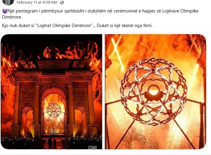 Në rrjete sociale, përfshi ato shqipfolëse, po qarkullojnë pretendime mbi praninë e “simbolizmit satanik” gjatë ceremonisë së hapjes së Lojërave Olimpike Dimërore Milano Cortina 2026. Pretendimet lidhen me dizajnin e flakës olimpike, e cila përshkruhet si një “pentagram i përmbysur.”