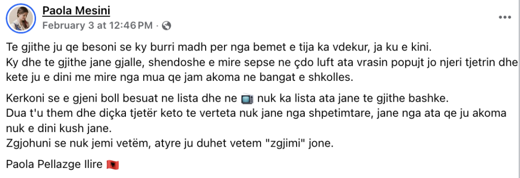 Postimi në fjalë shpërndan një video të marrë nga një llogari në TikTok, ku pretendohet se Jeffrey Epstein është filmuar së fundmi duke blerë në thjeshtësi të plotë në një supermarket. Në fakt, në video dallohet logoja e “Sora”, ëebsite i cili i përket kompanisë Open AI (e cila ka po ashtu në pronësi ChatGPT) dhe ku përdoruesit mund të përdorin inteligjencën artificiale për të prodhuar video dhe imazhe. Detaje të tjera të cilësisë së filmimit dhe mënyrës si lëvizin personazhet konfimorjnë se bëhet fjalë për një video të gjeneruar me Inteligjencën Artificiale.
