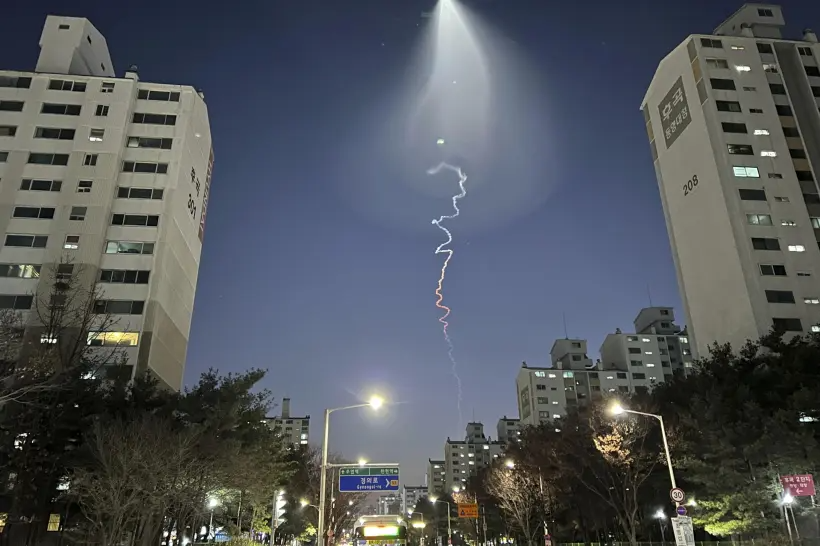 Foto e mësipërme tregon vazhdën e tymit të një rakete të lëshuar nga ushtria e Koresë së Jugut në Dhjetor të vitit 2022. Në një deklaratë, Ministria e Mbrojtjes e Koresë së Jugut, tha se lëshimi i kësaj rakete ishte pjesë e përpjekjeve të saj për të ngritur kapacitetet e saj të survejimit dhe për të forcuar pozicionin e saj të mbrojtjes.