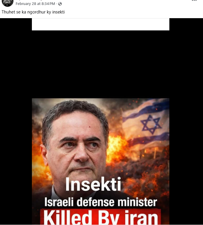 Pas vrasjes së udhëheqësit iranian Ali Khamenei në një sulm izraelito-amerikan ndaj Teheranit më 28 shkurt, në rrjete sociale, përfshi ato shqipfolëse, nisi të qarkullojë pretendimi se Ministri i Mbrojtjes i Izraelit, Israel Katz, ishte vrarë nga një sulm iranian.
