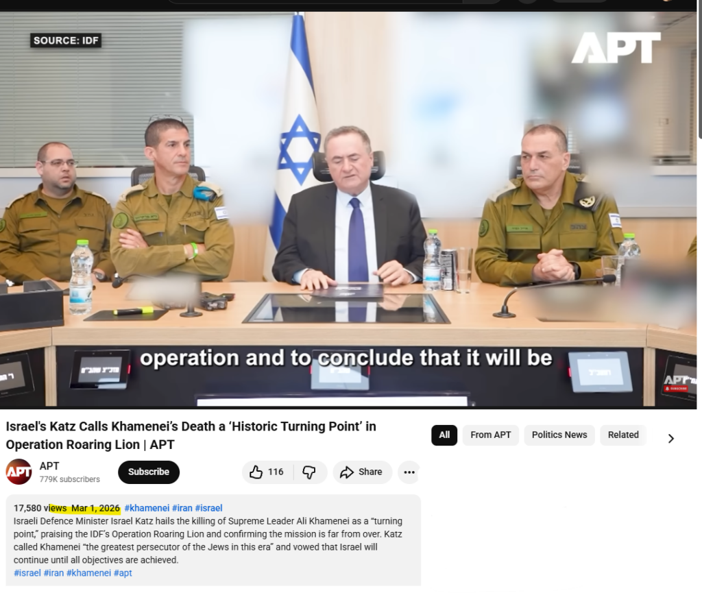 Ndërkaq, ushtria izraelite publikoi më 1 mars një video deklaratë nga Katz ku ai e quajti vrasjen e Khamenei si një “pikë kthese.”