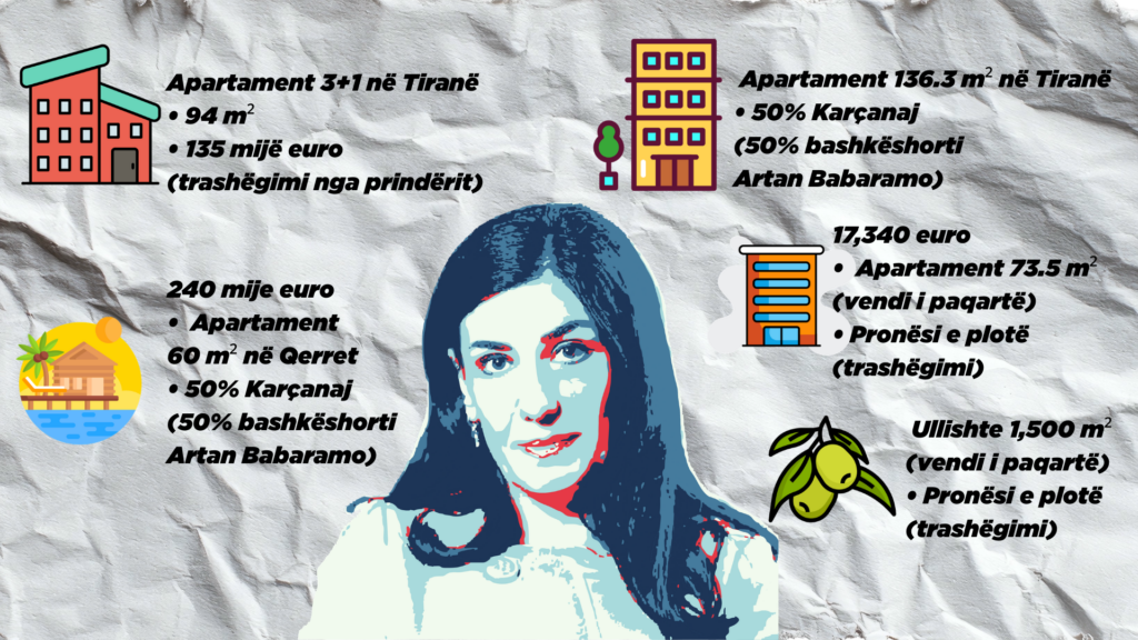 Mirlinda Karçanaj zotëron katër apartamente dhe një ullishte