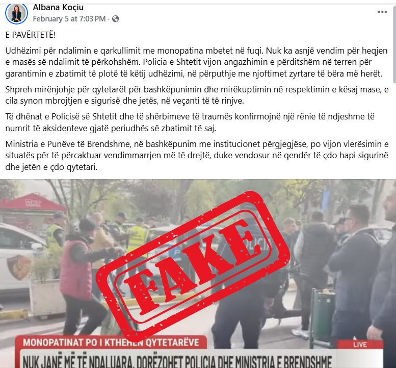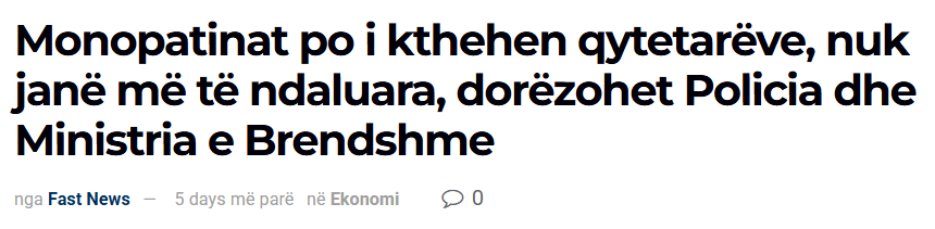 Katër muaj pasi Ministria e Brendshme shqiptare dhe Policia e Shtetit njoftuan ndalimin e përkohshëm të qarkullimit të monopatinave elektrike, mediat shqipfolëse kanë raportuar se monopatinat e sekuestruara po u kthehen qytetarëve, duke konfirmuar se ndalimi i tyre nuk është më në fuqi. Ky lajm ka krijuar konfuzion te përdoruesit e monopatinave duke menduar se mund t’i përdornin përsëri në rrugë mjetet elektrike që kishin mbajtur të mbyllura në shtëpi prej disa muajsh.