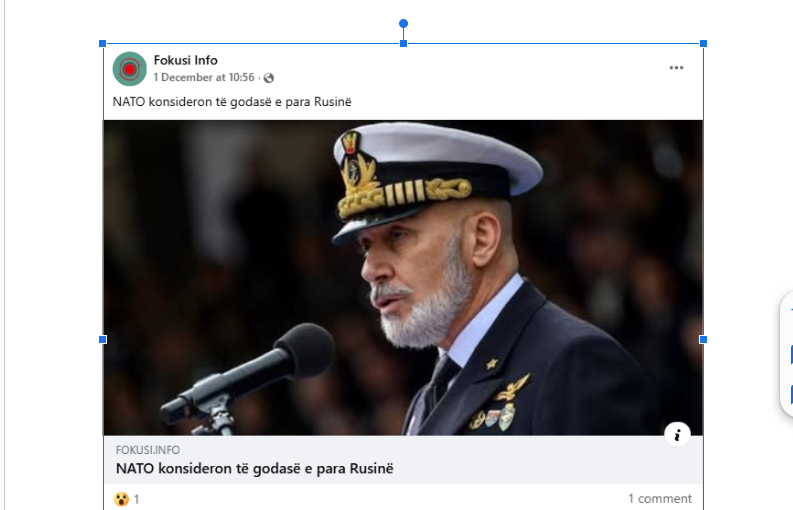 Pretendimi se NATO po planifikon të godasë e para Rusinë nuk qëndron. Deklarata e admiralit Giuseppe Cavo Dragone është nxjerrë nga konteksti dhe është interpretuar gabimisht si paralajmërim për sulm, kur në fakt ajo lidhej me një diskutim strategjik mbi reagimin ndaj sulmeve hibride dhe me dilema të hapura ligjore e politike.