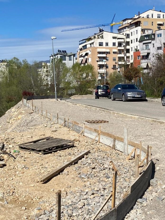Nga verifikimi në terren shihet se në gjurmën ku është projektuar ndërtimi i pedonales, janë hedhur disa shtresa betoni që janë kompletuar edhe me hapësirën për vendosjen e shtyllave të ndriçimit në pjesë të caktuara të zonës.