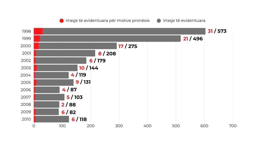 Statistikat policore janë më të qarta pas vitit 1998, ku krahas numrit të vrasjeve është caktuar edhe “motivi”, për rastet ku ngjarja është zbuluar.