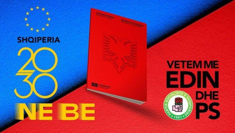 “Me thjesht një votë për mua dhe PS më 11 maj, çdo prind ka në dorë t’u japë fëmijëve të vet pasaportën e qytetarit shqiptar të Bashkimit Europian, e të mos i lerë të rriten si qytetarë të dorës së dytë në mes të Europës”,  postonte në faqen e tij në “Facebook” kryeministri Edi Rama më 20 mars 2025, teksa ende nuk kishte nisur zyrtarisht fushata elektorale për 11 majin.