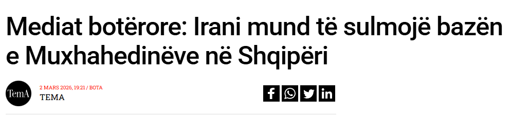 Një tjetër ‘lajm’ që u shpërnda gjerësisht në peizazhin mediatik shqipfolës ishte pretendimi se Irani do të sulmonte bazën e Muxhahedinëve, një grupi opozitar iranian që strehohet në Manëz që në 2018.