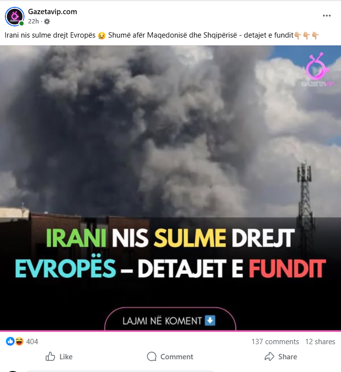 Përshkallëzimi i konfliktit mes Iranit dhe Izraelit, i shkaktuar nga vrasja e udhëheqësit iranian Ali Khamenei në një sulm izraelito-amerikan ndaj Teheranit më 28 shkurt, u shoqërua me një vërshim dezinformimi në media dhe rrjete sociale, përfshi ato shqipfolëse.