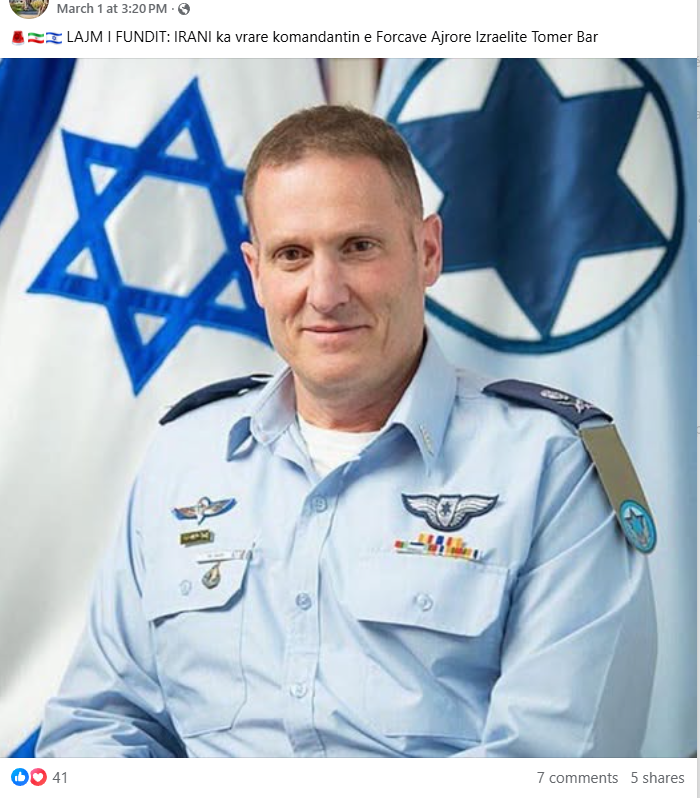 Në rrjete sociale qarkulluan gjithashtu një numër lajmesh të rreme sa i përket vdekjeve të figurave të rëndësishme ushtarake dhe politike izraelite. Komandanti i Forcave Ajrore izraelite Tomer Bar dhe Ministri Izraelit i Mbrojtjes, Yisrael Katz, u bënë vikima të parakohshme të raketave iraniane, megjithëse imazhe dhe artikuj të botuara në mediat vendase dhe ndërkombëtare i tregojnë të dy të gjallë.