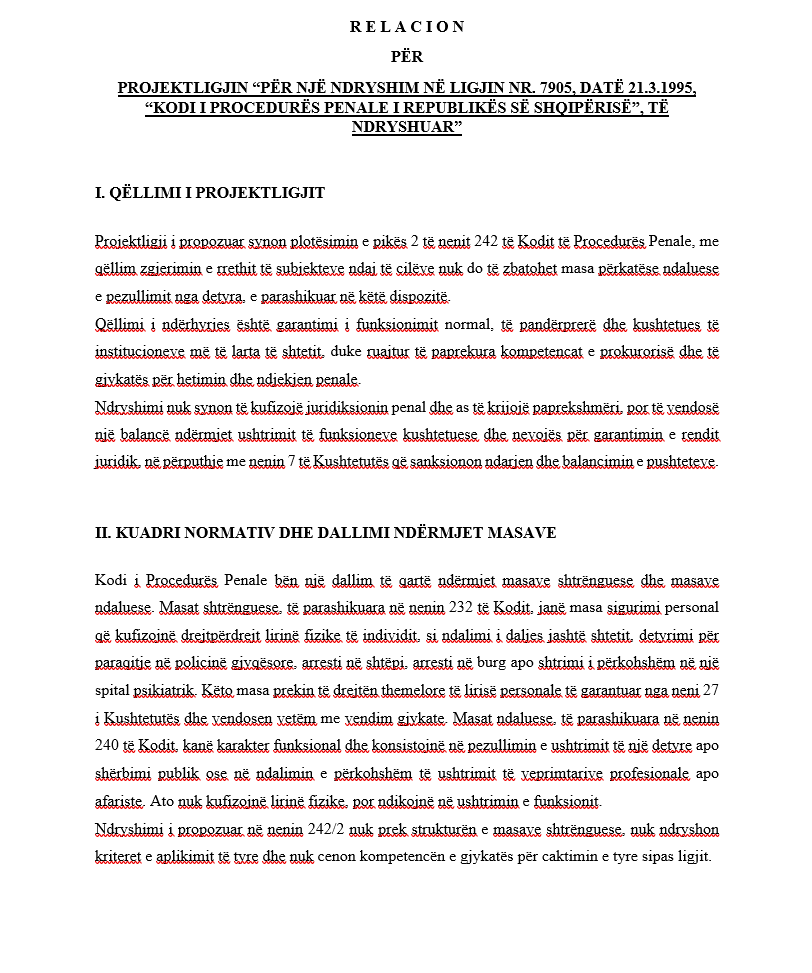 Sipas relacionit, projektligji respekton Kushtetutën, balancën e pushteteve dhe parimin e proporcionalitetit.